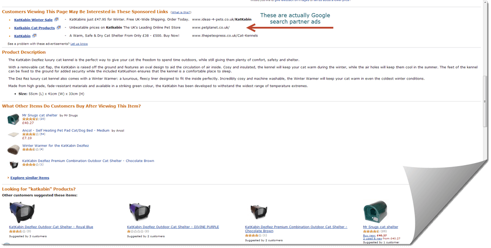Both Amazon and eBay are part of the Google Search Partner network. Just like Ask or AOL, they serve Google AdWords search ads to their users. Here’s where it gets complicated.